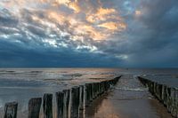 Foto gemaakt tijdens de zonsondergang op het strand van Domburg, Zeeland. Met strandpalen.