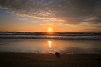 Een van de mooiste zonsondergangen van Katwijk aan Zee. Helder en met weerkaatsing op het water. Met zeewier op de voorgrond en wat schelpjes en de branding maken het plaatje compleet.