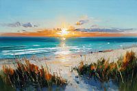 Schilderij van een dromerige zonsondergang op het strand als hoogwaardige kunstdruk.