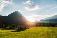 Zonsondergang in Seefeld, Tirol. De berg op de foto heet Hohe Munde - een prachtige berg om te fotograferen. De bergen en natuur in deze regio van Tirol zijn bijzonder mooi!