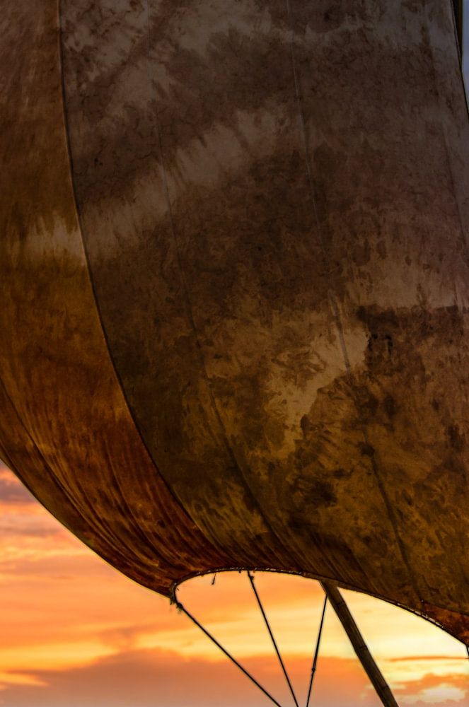 Schilderachtige zonsondergang en zeilboot op het strand van Negombo, Sri Lanka