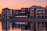 De nieuwe appartementen in Veenendaal-Oost tijdens de zonsondergang. Deze appartementen liggen aan het water in Veenendaal-Oost. Ook zit hier een restaurant aan het water.