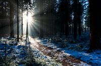 Zonsondergang besneeuwde bossen