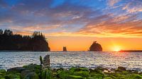 Een horizontale 16:9 foto van een avond bij zonsondergang op La Push Beach, niet ver van de stad Forks in Olympic National Park, de staat Washington, Verenigde Staten.
