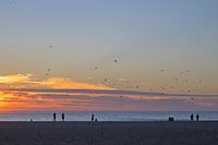 Mensen kijken naar de mooie zonsondergang aan de kust bij Nazare in Portugal