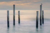 Zonsondergang bij Palendorp in Petten. Op het strand van Petten staat het monument Palendorp. Dit prachtige kunstwerk bestaat uit 160 palen van zes tot twaalf meter lang. De palen hebben de vorm van tien huizen en een kerk. Het herinnert aan het oude Petten, dat lang geleden door de zee werd overspoeld.