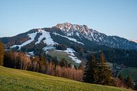 Zonsondergang in Sorgschrofen/Zinken met uitzicht op het skigebied Jungholz in de lente