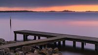 Een schilderachtige zonsondergang bij een steiger aan het Schildmeer, een meer gelegen in de streek Duurswold in de Nederlandse provincie Groningen tussen Schildwolde en Overschild. Door het meer stroomt het Afwateringskanaal van Duurswold.