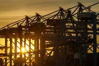 Zonsondergang bij containerterminal Tweede Maasvlakte.
