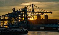 Zonsondergang bij containerterminal Tweede Maasvlakte.