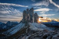 Zonsondergang bij de 3 toppen in de Dolomieten.