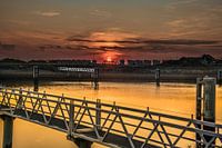 Zonsondergang boven de Lorentsz sluizen bij het Friese dorpje cornwerd. De Afsluitdijk aan de Friese kant in de zomer.