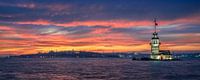 Kleurrijke zonsondergang bij de Meisjestoren in Istanbul, Turkije