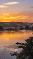 Een bootje op de Nijl in Aswan tijdens de zonsondergang, in het zuiden van Egypte.