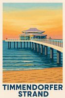 Deze gestileerde en gestructureerde reisposters toont de pier met theehuis van Timmendorfer Strand in het licht van een kleurrijke zonsondergang. De afbeelding is gebaseerd op eigen foto's en benadrukt de elegante architectuur, de lange steiger en het schitterende kleurenspel boven de zee. Als stadsposter combineert het…