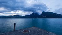 Zonsondergang bij de Thunersee nabij het stadje Spiez (Berner Oberland).