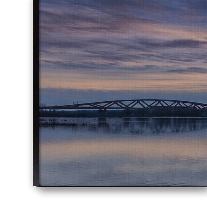 Zonsondergang bij het Engelse Werk waarbij zowel de IJsselbrug als de rode spoorbrug in 1 plaat gevangen zijn.