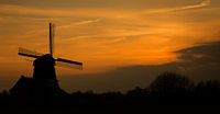 Zonsondergang bij de molen van Volendam waardoor de molen als een silhouette afsteekt bij de prachtige lucht