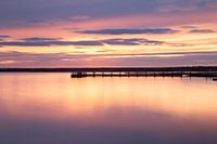 Een prachtige zonsondergang met een typisch Nederlandse wolkenlucht. Door met een lange sluitertijd en grijsfilters te werken, wordt het water glad als een spiegel. Een heerlijke plek aan de Grevelingen om in stilte te genieten.