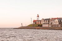 Uitzicht op de vuurtoren van Urk tijdens zonsondergang op een koude winterdag in januari. Urk, de parel van Flevoland