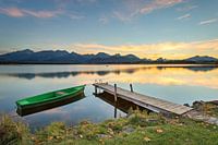 Slechts een paar kilometer van Füssen in de Allgäu ligt de Hopfensee, een zeer schilderachtig meer met op de achtergrond een prachtige bergachtige achtergrond.