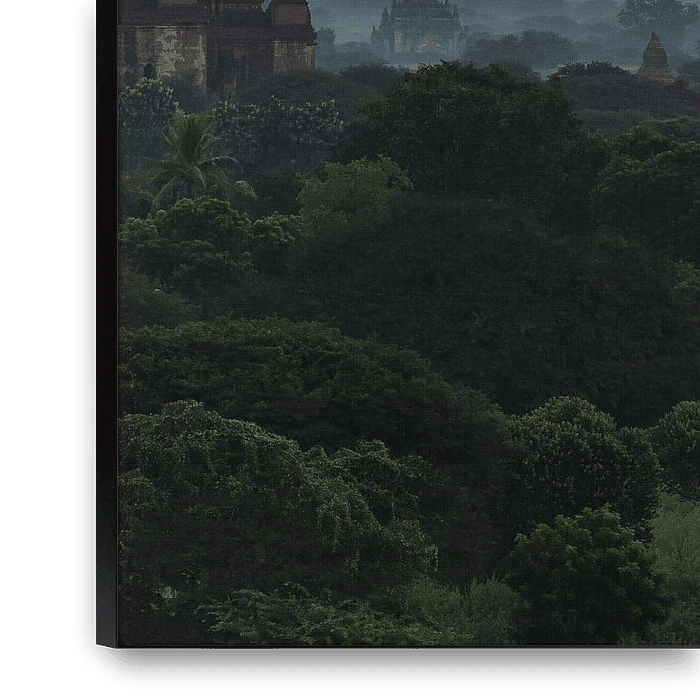 Koop de foto Zonsondergang bij het tempelveld in Bagan, Myanmar van Shanti Hesse als print op canvas, aluminium dibond, (ingelijste) fotoprint, behang en ArtFrame. Voor jou op maat geprint in Fine-Art kwaliteit.