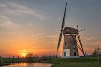 Zonsondergang bij de Mallemolen in Gouda. De Mallemolen of Molen van de Oostpolder in Schieland is een windmolen aan de Waddinxveense Wetering in de Nederlandse plaats Gouda.