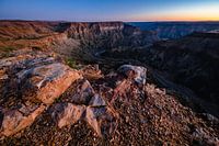 Zonsondergang boven het indrukwekkend landschap van de Fish River Canyon in Namibië, na de Grand Canyon de grootste kloof ter wereld.