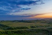 IJsland staat natuurlijk bekend om haar innemende natuurschoonheid met watervallen, Gletsjers, Vulkanen en geisers. Maar ook de gewone landschappen zijn met een zonsondergang ook fenomenaal. Boven deze groene heuvels zakte de zon langzaam achter de horizon.