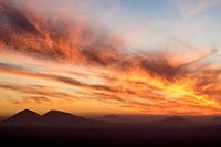 Windveren worden oranje verlicht boven de avondlucht op Lanzarote.