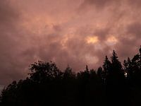 Whirlpool van kleuren boven Zweeds sparrenbos.