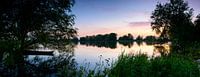 Zonsondergang boven de IJssel uiterwaarden aan de Zalkerdijk in de zomer. Panorama foto samengesteld uit meerdere beelden.