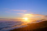 Wolken boven de bergen bij Rabaçal op het eiland Madeira tijdens zonsondergang aan het eind van een mooie zomerdag.