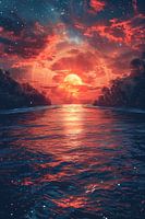 Dompel jezelf onder in de rustgevende schoonheid van een Klassiek zonsondergang boven de oceaan. Perfect voor op de slaapkamer of in de woonkamer om een vleugje romantiek en sereniteit toe te voegen aan je interieur.