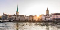Oude stad Zürich met de Münsterbrücke, de Fraumünster en de kerk St. Peter.