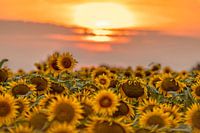 Zonsondergang boven een zonnebloemveld op de heuvels van Zuid-Limburg