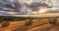 Zonsondergang boven strobalen in Zuid-Limburg in de buurt van Lemiers