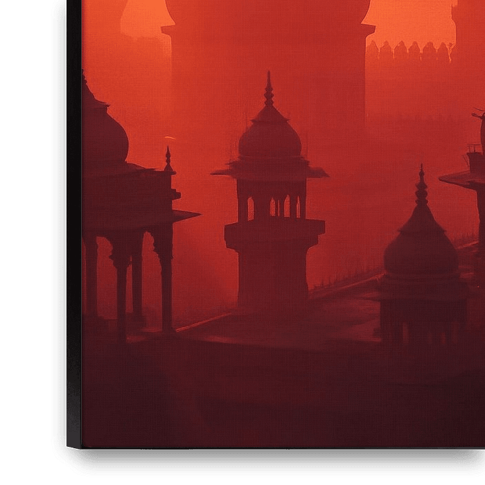Majestueuze silhouetten van koepels en torens rijzen op in een warme, gouden gloed en vertellen van oosterse pracht en praal. Dit fascinerende decor creëert een mysterieuze sfeer die de woonkamer verandert in een plek van ontspanning. Perfect voor wie de magie van vreemde culturen waardeert en een vleugje exotisme in huis wil halen.