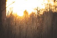 Koop dit landschapskunstwerk Zonsondergang closeup van grassprieten en riet van Marjolijn Barten op canvas, aluminium dibond, (ingelijste) fotoprint, behang en ArtFrame, op maat geprint in Fine-Art kwaliteit.