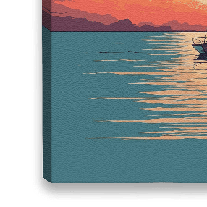 Zonsondergang en een boot Minimalisme modern schilderij met een prachtige en unieke stijl. Met prachtige kleurtinten en een uniek ontwerp maakt dit tot een stijlvolle fotoprint die prachtig staat in elke ruimte. 100% uniek en origineel!