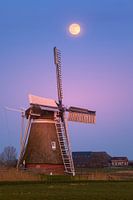 Zonsondergang en volle maan bij Hoeksmeer, Garrelsweer van Henk Meijer Photography