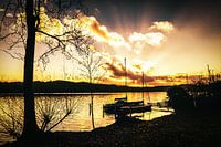 Zonsondergang en wolkenvorming aan het Baldeneymeer met boten in Essen Ruhrgebied