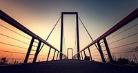 Abstract beeld van de fietsbrug tijdens zonsondergang in de Blauwe Stad