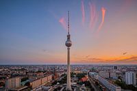 Zonsondergang in Berlijn bij de Berlijnse TV-toren. De Televisietoren staat in het centrum van voormalig oost-Berlijn op de Alexanderplatz, Duitsland.