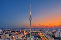 Een digitale olieverf bewerking van een zonsondergang in Berlijn bij de Berlijnse TV-toren. De Televisietoren staat in het centrum van voormalig oost-Berlijn op de Alexanderplatz, Duitsland.