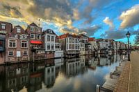 Oude panden aan de Linge in Gorinchem tijdens de zonsondergang