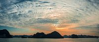 Koop dit landschapskunstwerk Zonsondergang in Halong Bay, Vietnam van Rietje Bulthuis op canvas, aluminium dibond, (ingelijste) fotoprint, behang en ArtFrame, op maat geprint in Fine-Art kwaliteit.