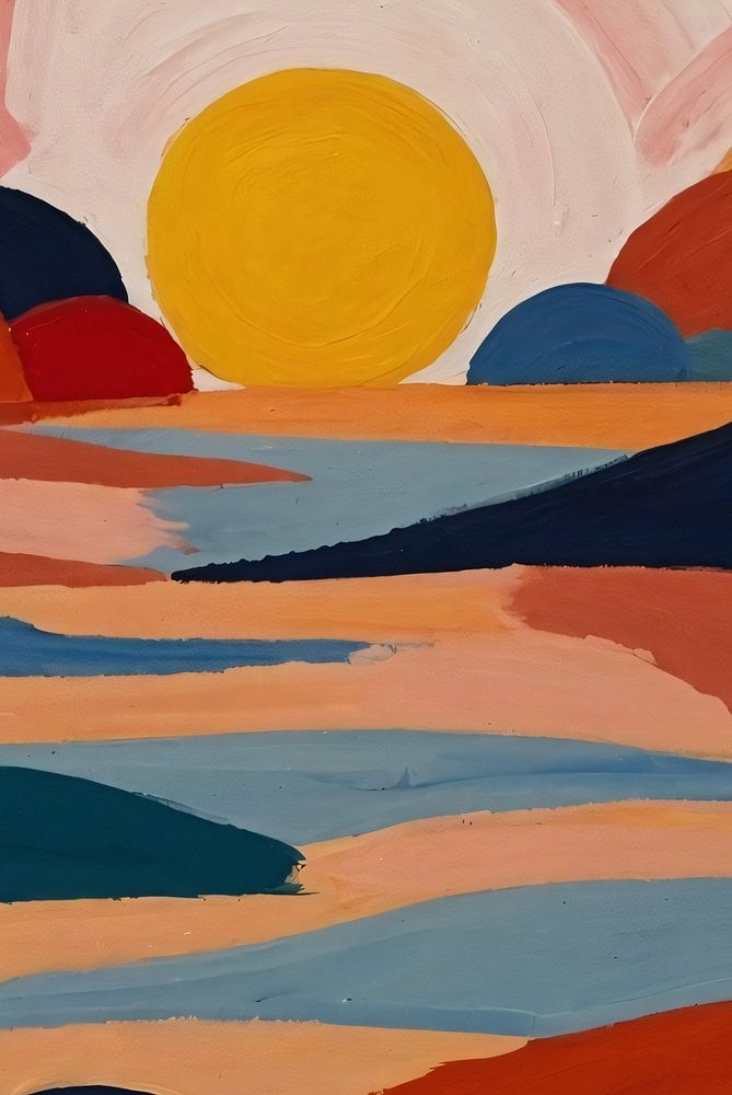 Ontdek de harmonieuze vermenging van kleur en vorm in dit schilderij, waar de serene schoonheid van de ondergaande zon en kalme wateren tot leven komen. In een abstract spel van lijnen en vlakken voert dit kunstwerk je mee naar een wereld van innerlijke rust en contemplatie. De rijke, levendige kleuren nodigen uit tot een moment van bezinning, terwijl het dynamische contrast tussen licht en donker de eeuwige dans tussen dag en nacht symboliseert. Perfect voor elke moderne leefruimte, brengt dit schilderij een vleugje schoonheid en sereniteit in je huis, en dient als een dagelijkse herinnering aan de eenvoudige wonderen van de natuur.
