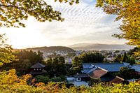 Zonsondergang op een warme herfstavond in Kyoto, Japan met uitzicht over tempels en de stad