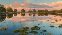 Een avond tijdens zonsondergang op het Kloosterveld in Nationaal Park Dwingelderveld, het grootste natte heidegebied van West-Europa. Gelegen in de Nederlandse provincie Drenthe, in de driehoek Dwingeloo, Ruinen en Beilen. Natte laagtes en hoge zandruggen wisselen elkaar af in het uitgestrekte Dwingelderveld. Je vindt er heide, bos, jeneverbesbosjes, stuifzand en ruim veertig vennen. Een deel van die vennen is ontstaan in de ijstijd, andere zijn het resultaat van veenafgravingen.